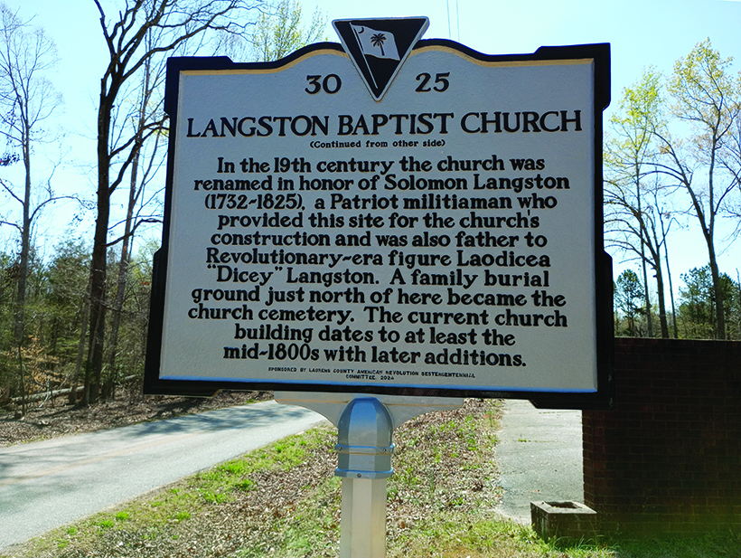 Langston Baptist Church Unveiling On Saturday, April 26, at 4:30 the Laurens County American Revolution Committee (SC 250) and Langston Baptist Church will unveil the historical marker telling the.....Read More